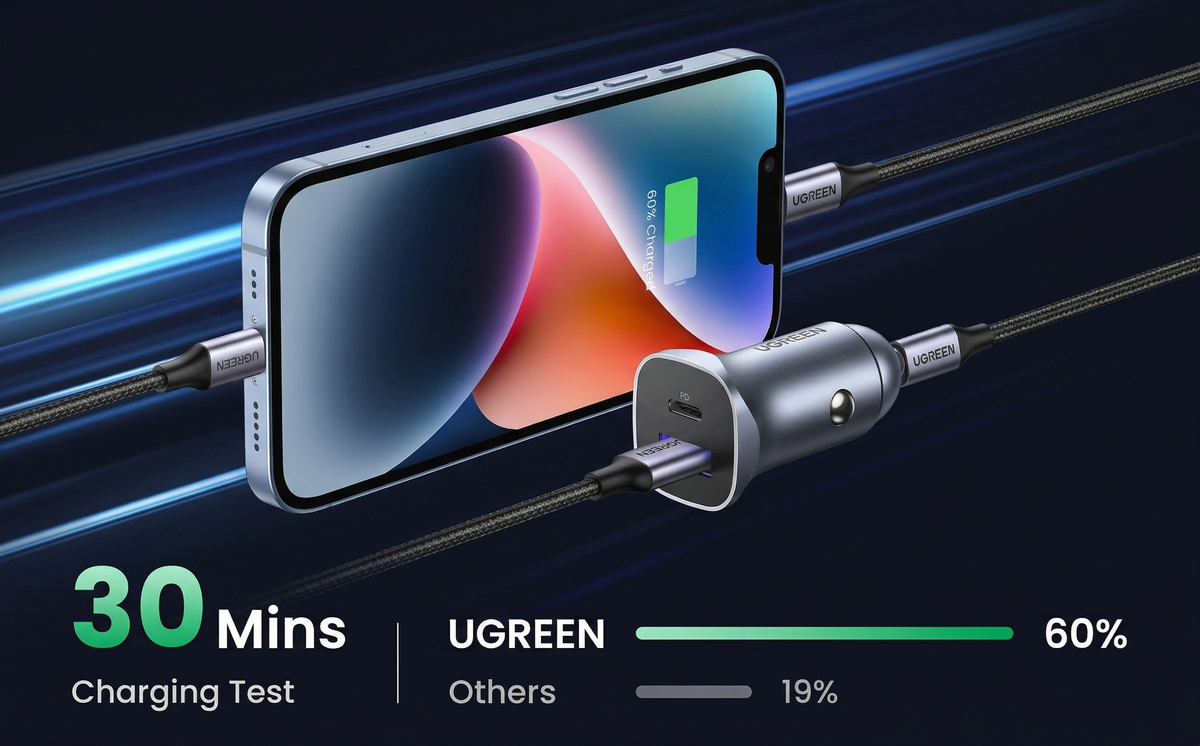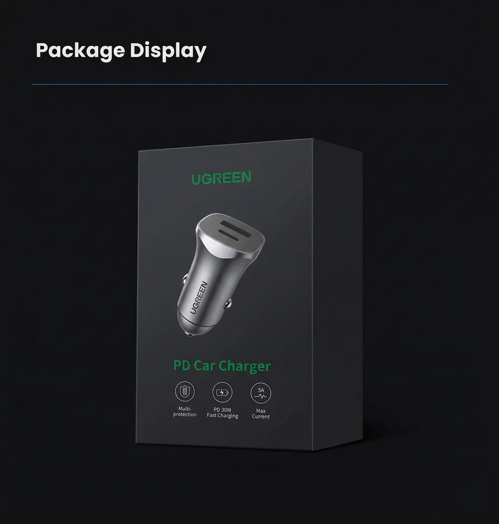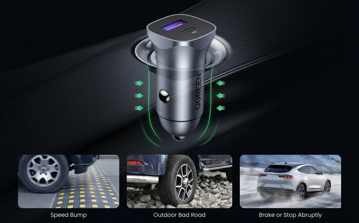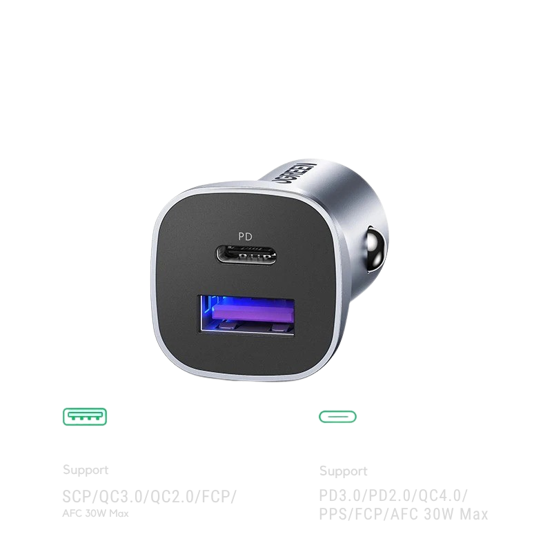 Do not let its thumb-sized profile fool you. The UGREEN 30W Fast Car Charger is a pocket-sized powerhouse designed to keep you connected on the move. Weighing a mere 38g, it effortlessly delivers independent 30W fast charging through its USB-C port, slashing your waiting time. Whether you are driving to work or embarking on a long road trip, its dual-port design allows you to simultaneously fast-charge your smartphone and your passenger's tablet, maximizing your in-car efficiency without any cluttered mess.