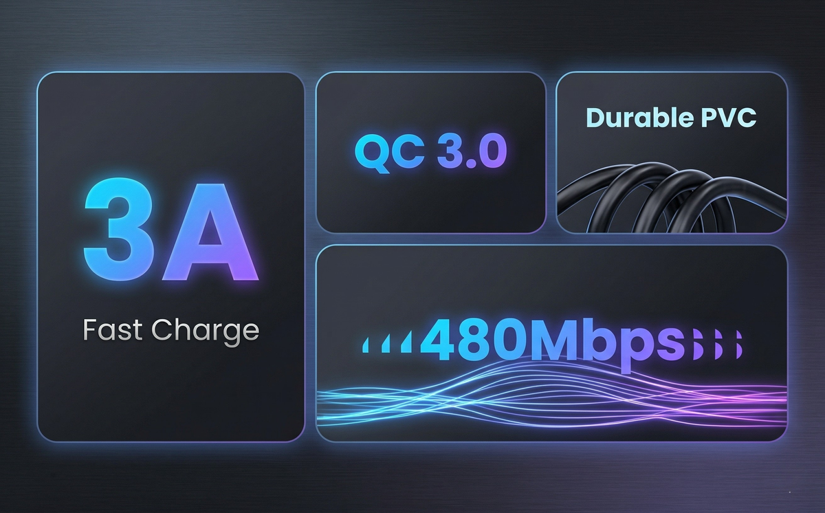 Time is your most valuable asset, and this cable ensures you never waste it. Engineered with precision, it commands a formidable 3A maximum current to dramatically reduce your charging times. Fully compatible with mainstream fast-charging protocols like Quick Charge 3.0, FCP, and AFC, it seamlessly adapts to your premium devices. Whether you're powering up your smartphone before a meeting or syncing high-res files at a rapid 480Mbps, expect unyielding, tailored performance.