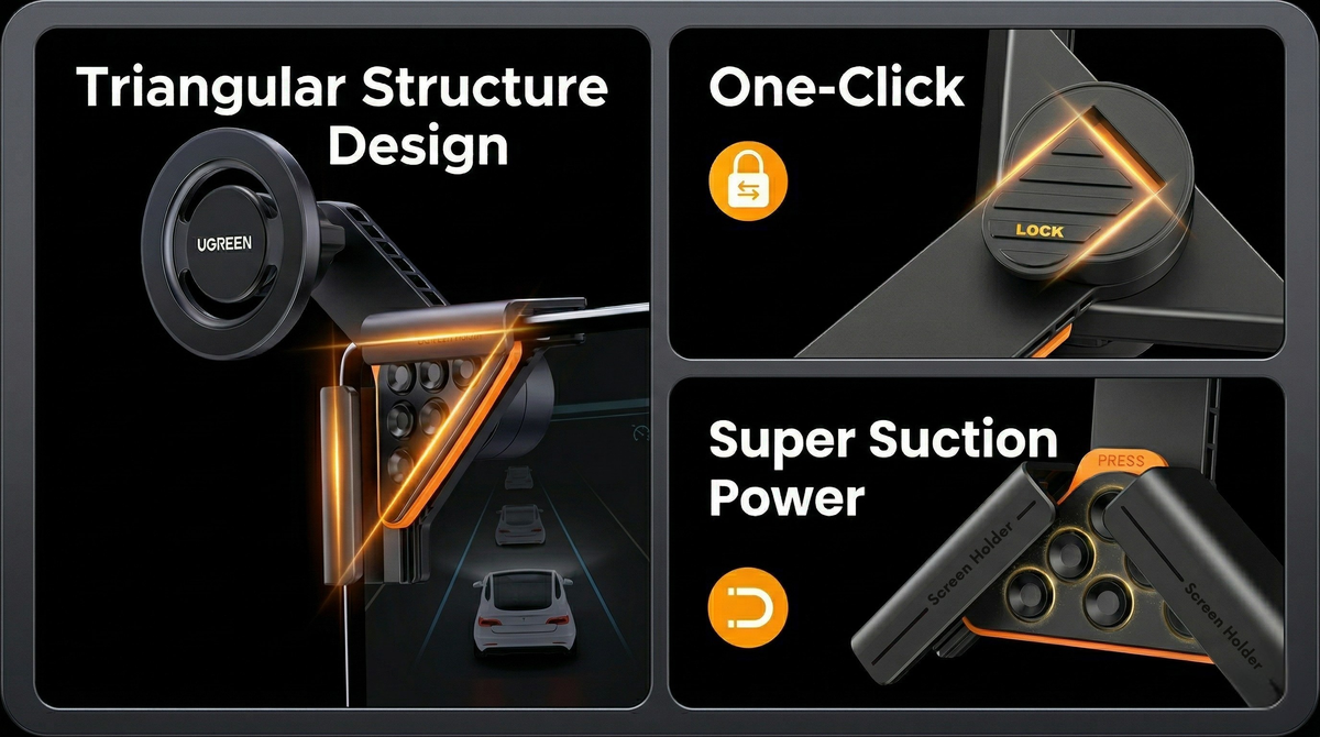 Crafted from aerospace-grade aluminum alloy, this isn't just a phone mount; it's an extension of your car's sleek interior. The advanced triangular stability ensures your phone stays perfectly still, giving you a premium, shake-free driving experience.