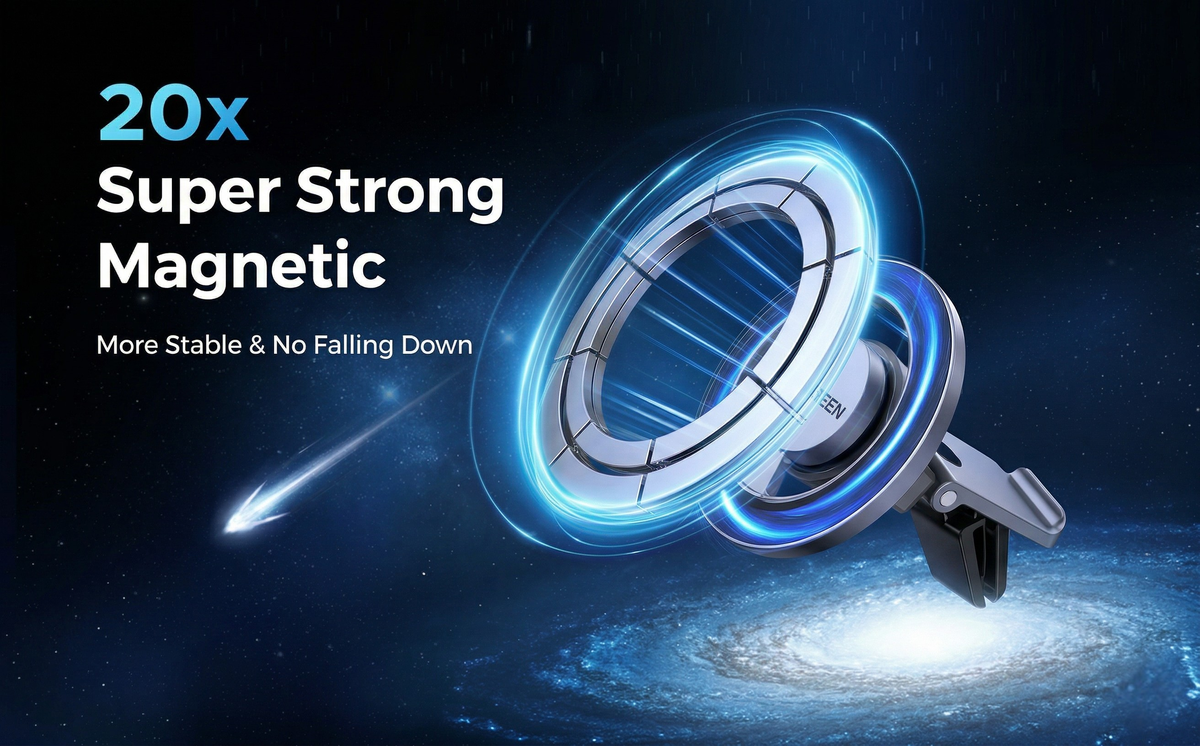 Equipped with an upgraded 20x magnetic array, this mount delivers a massive 22N of suction power. Combined with the enlarged adhesive base, your device is guaranteed to stay securely in place—no falling, no vibrating, even on the roughest terrains.